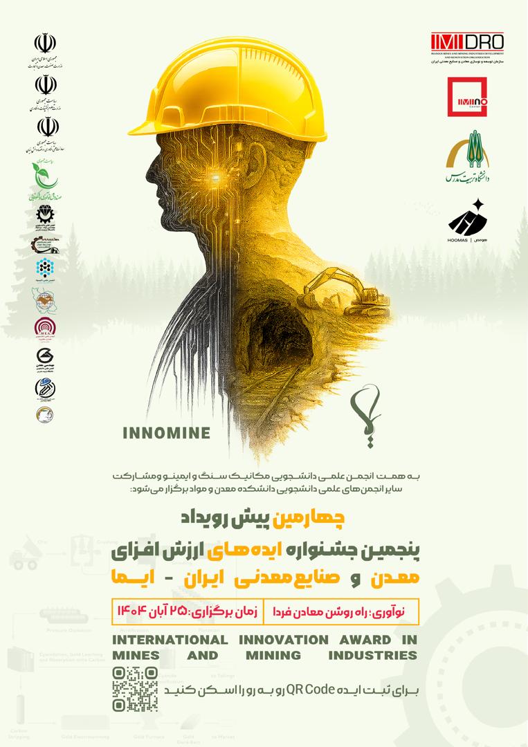 چهارمین پیش‌رویداد جشنواره ایده‌های ارزش‌افزای معدن و صنایع معدنی ایران – ایما (INNOMINE 5) با همکاری ایمینو و انجمن علمی دانشجویی مکانیک سنگ و انجمن های علمی دانشجویی دانشکده معدن و مواد روز یکشنبه ۲۵ آبان‌ماه  ۱۴۰۴، ساعت 8 و 30 دقیقه صبح در سالن شهید مطهری دانشگاه تربیت مدرس برگزار می‌شود.